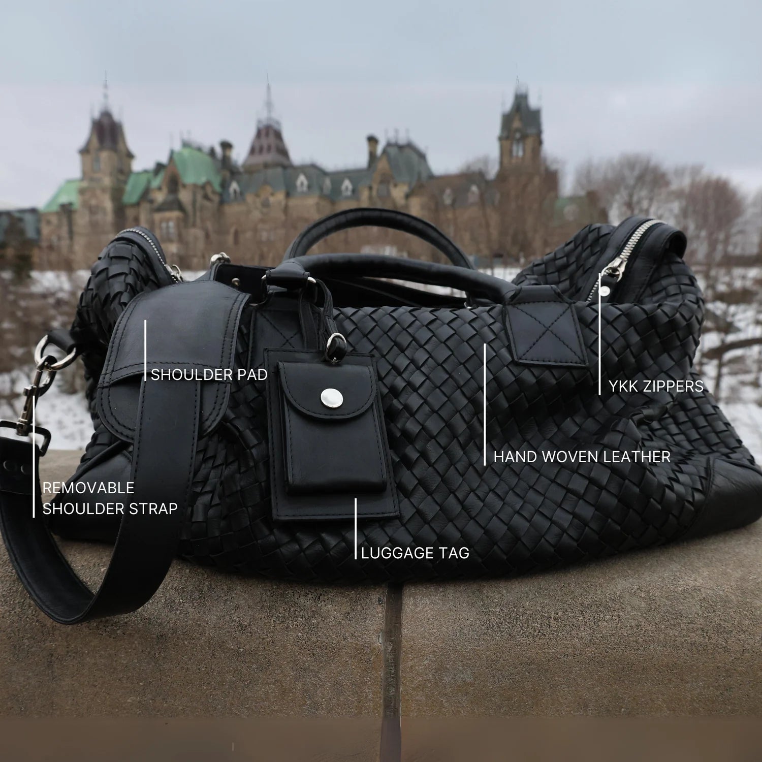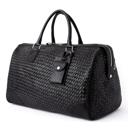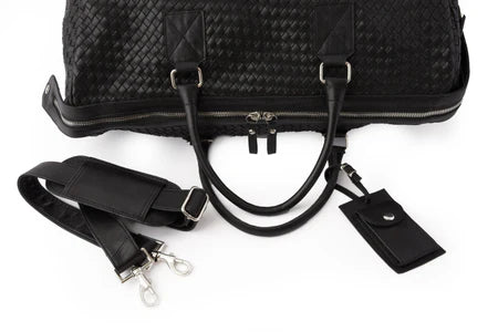 The Woven Leather Duffle 50L is a masterpiece of craftsmanship, hand-stitched and hand-woven, taking 20 hours to create, ensuring exceptional quality and attention to detail. Made from premium leather that develops a beautiful patina, it's airline carry-on friendly and perfect for 3-5 day trips. It features a spacious interior and two deep zipper pockets.